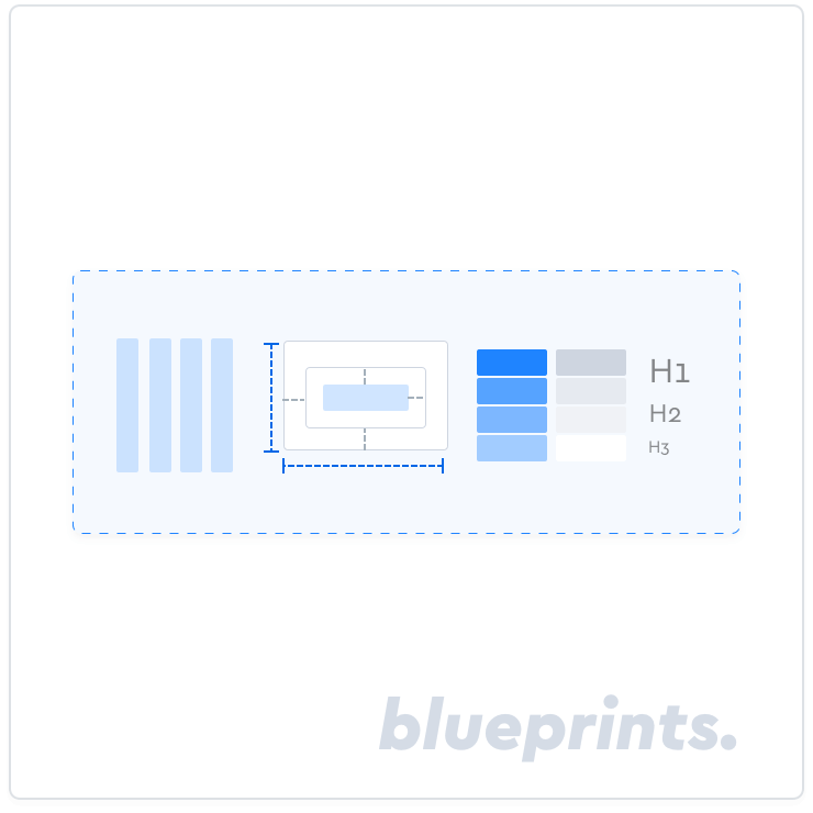 Base elements (avatars, iconography, etc.) — basic components that inherit specs from it's parent category (Blueprints).