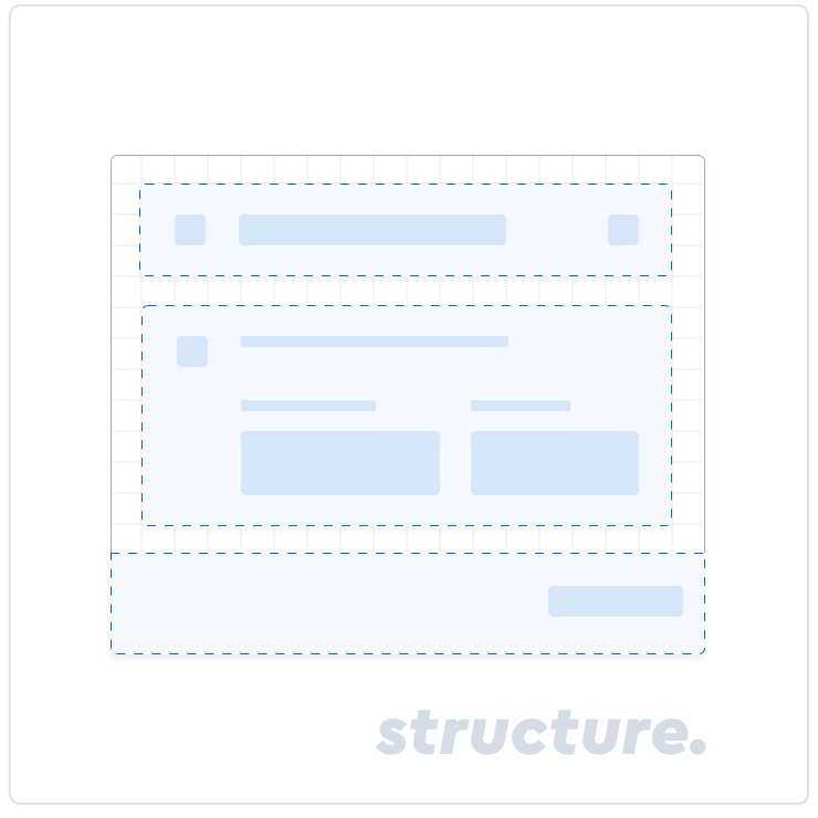 Structures (cards, modals, sidebars, menus, etc.) are composed of a combination of base and block elements.