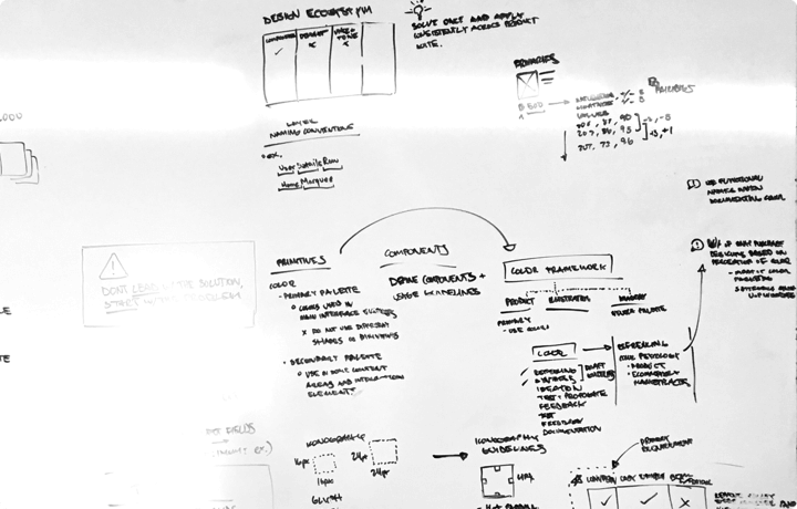 We drafted a version of Tim Van Damme’s Component Worfkflow, and modified it based on our needs. Using this hierarchy we could provide a cascading framework to lean on and standardize design without being too restrictive. It’s nothing inventive or novel but gave us just the right amount of structure